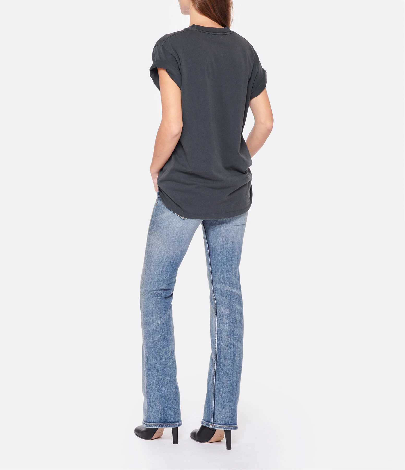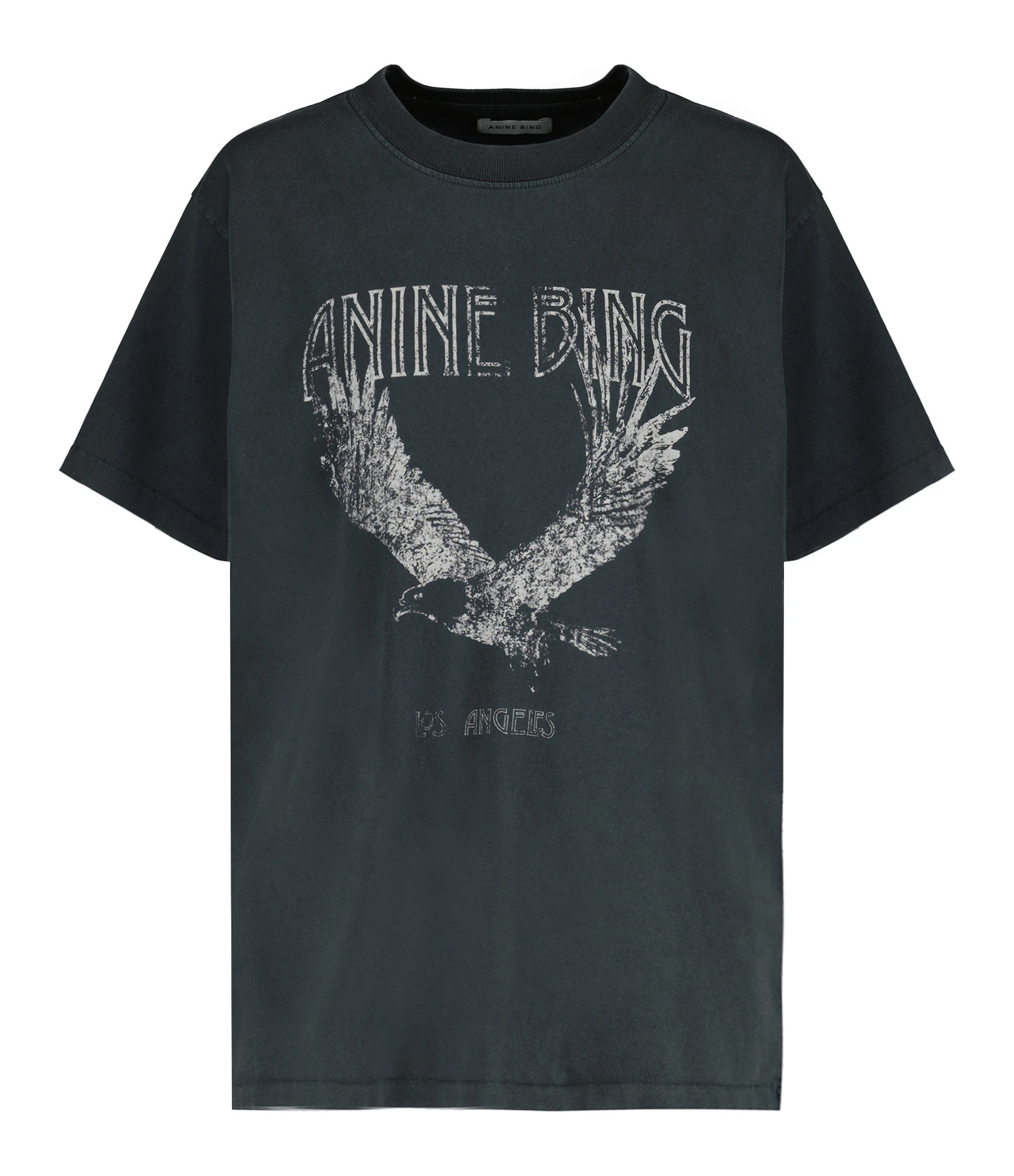 Tee-shirt en coton gris délavé sérigraphié. Col rond. Manches courtes. Inscriptions gris clair à l’avant. Coupe droite. Base droite. Non doublé.