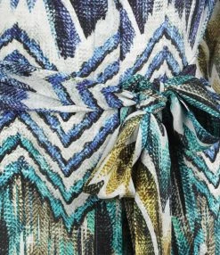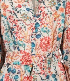 Short en coton à fleur multicolore. Passants pour ceinture. Ceinture à imprimé à nouer. Quatre poches. Coupe droite. Base droite.