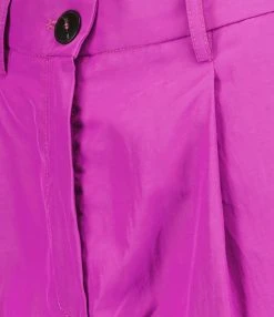 Robe longue plissée en coton violet. Manches longues. Fermeture cache-cœur sur tout le devant. Ceinture en corde violette ajustable à la taille. Fentes latérales sur le bas. Coupe évasée. Base droite.