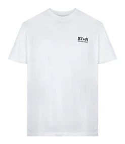 Tee-shirt en coton blanc avec inscription noire « Star Golden Goose » floquée sur la poitrine. Col rond. Manches courtes. Coupe droite. Base droite.