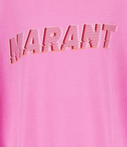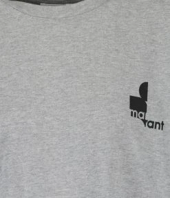 Tee-shirt en coton blanc avec l’inscription « Marant Paris » imprimée en noir avec un effet effacé et usé sur le devant. Col rond côtelé. Manches courtes. Coupe droite. Base droite.