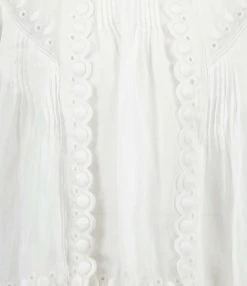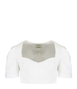 Top court blanc à manches courtes. Effet bouffant aux épaules. Décolleté en cœur. Fermeture invisible latérale.