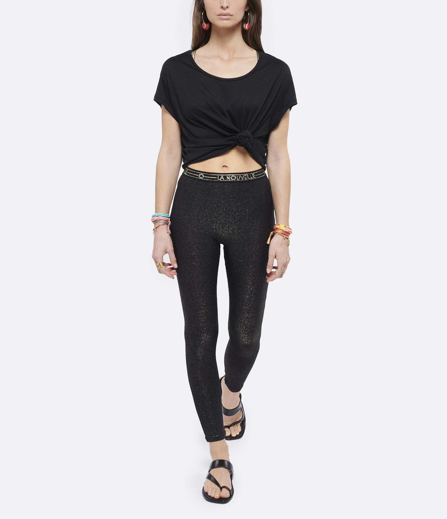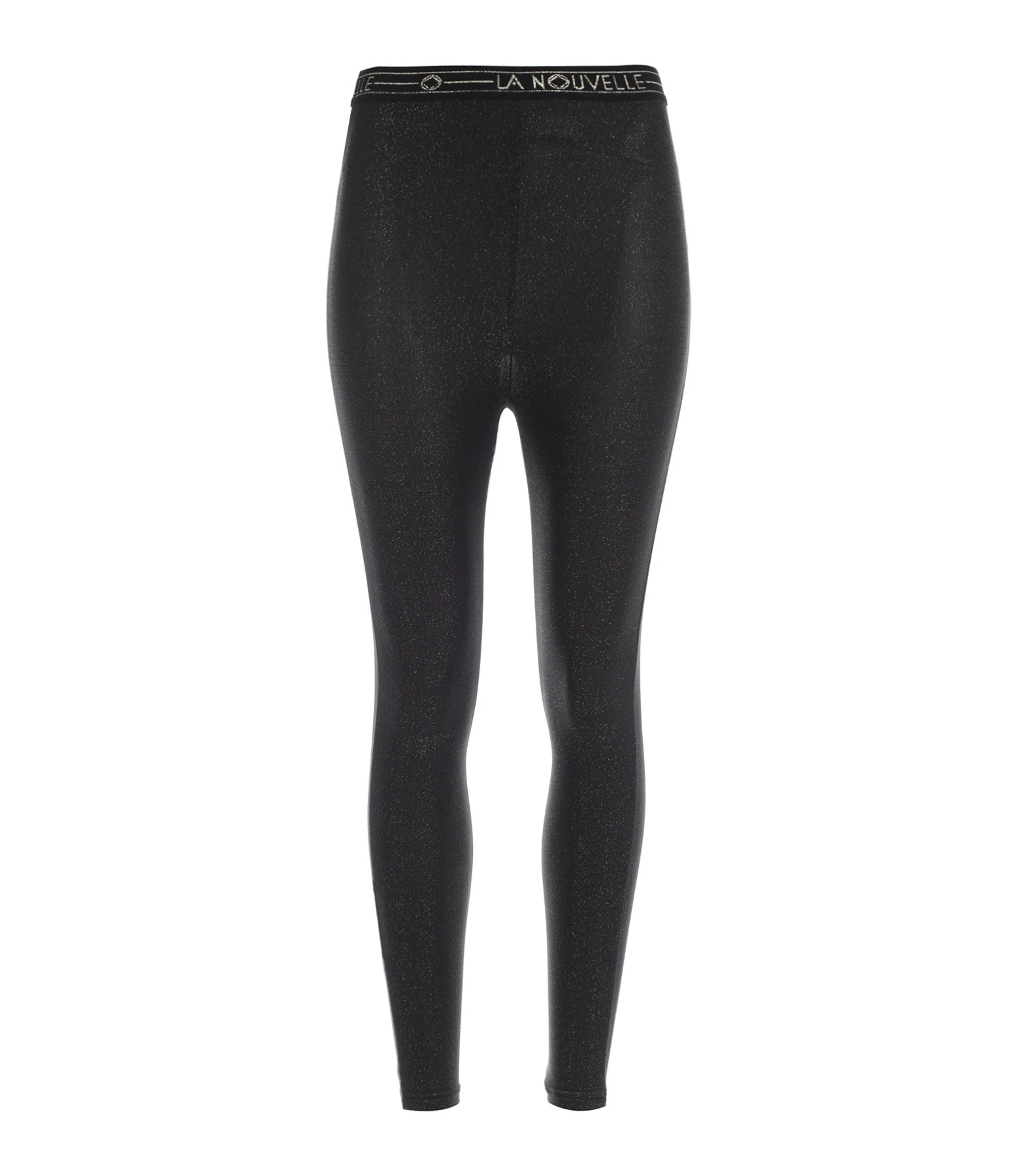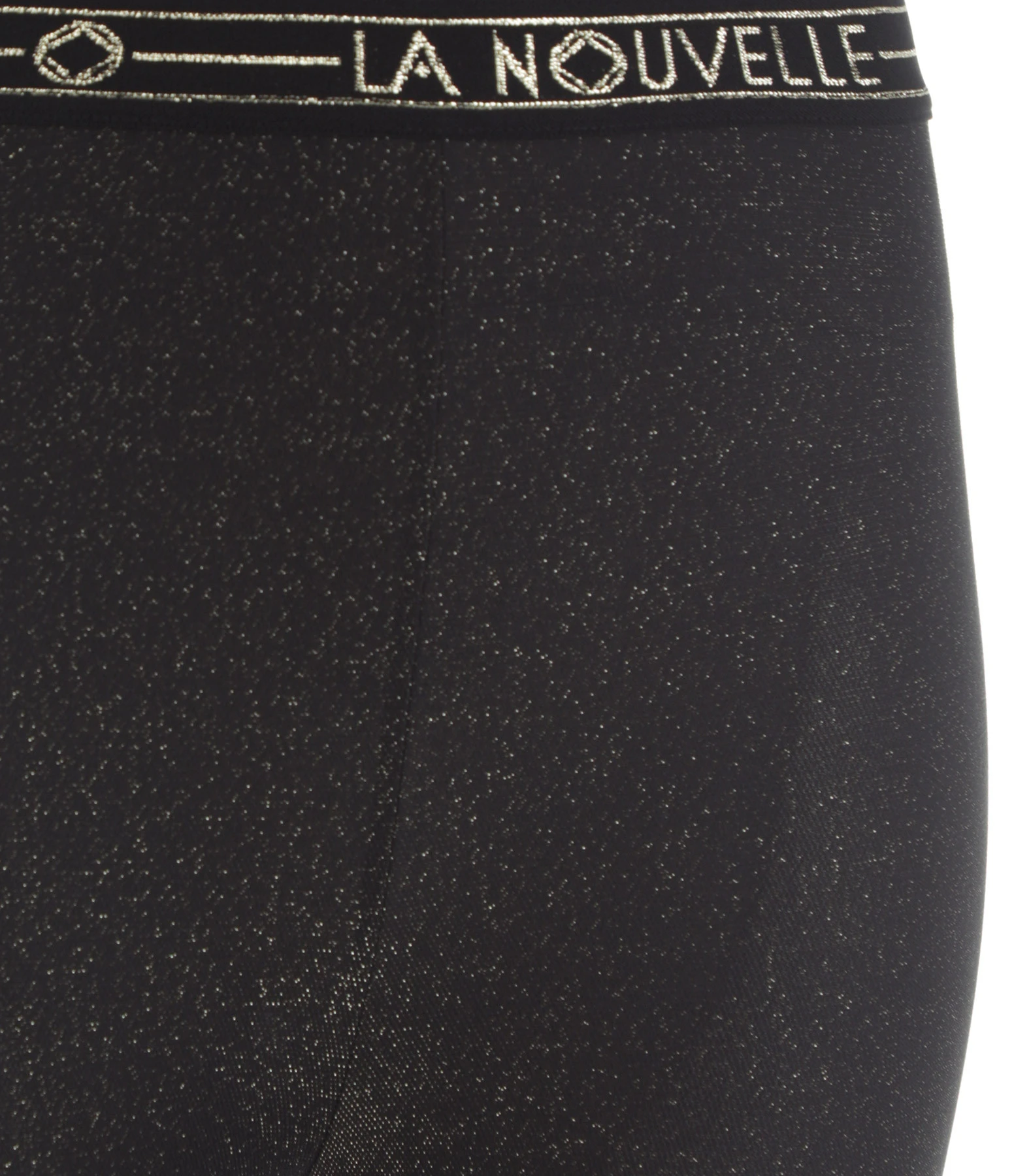 Legging noir pailleté doré. Taille élastiquée avec inscription « La Nouvelle ».