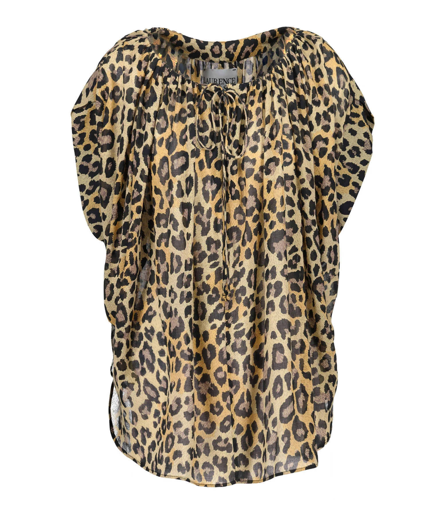 Top en coton à imprimé léopard. Col en V avec lien de serrage. Manches courtes. Base arrondie. Coupe ample.