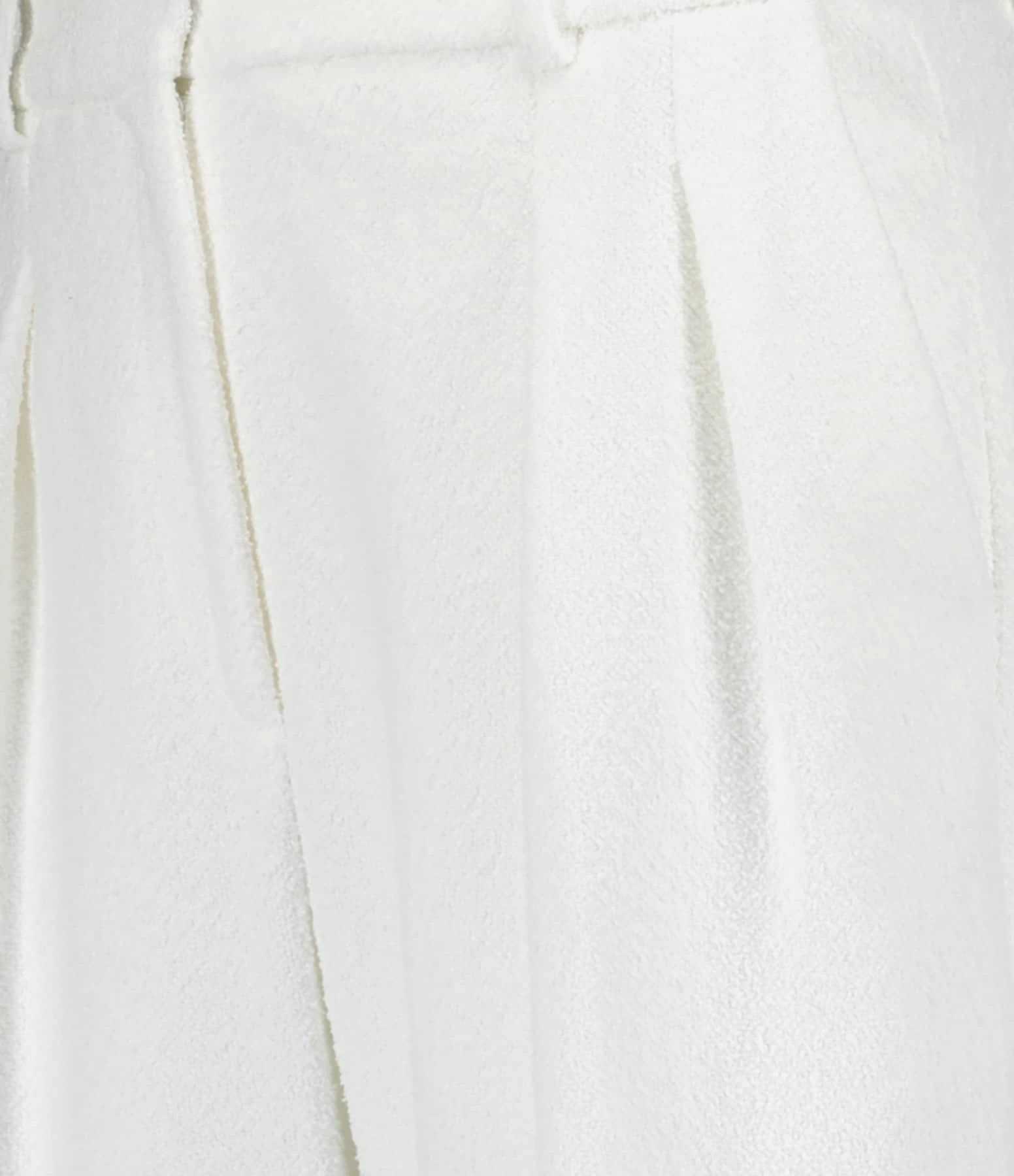 Pantalon tailleur à pinces en coton mélangé blanc. Passants pour ceinture. Braguette zippée et crochet. Deux poches italiennes. Deux poches italiennes. Deux poches passepoilées dans le dos. Coupe large. Base droite.