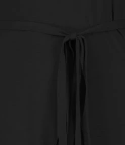 Robe longue en bambou noir. Col arrondi. Manches courtes. Cordon à nouer autour de la taille. Coupe droite. Base droite.