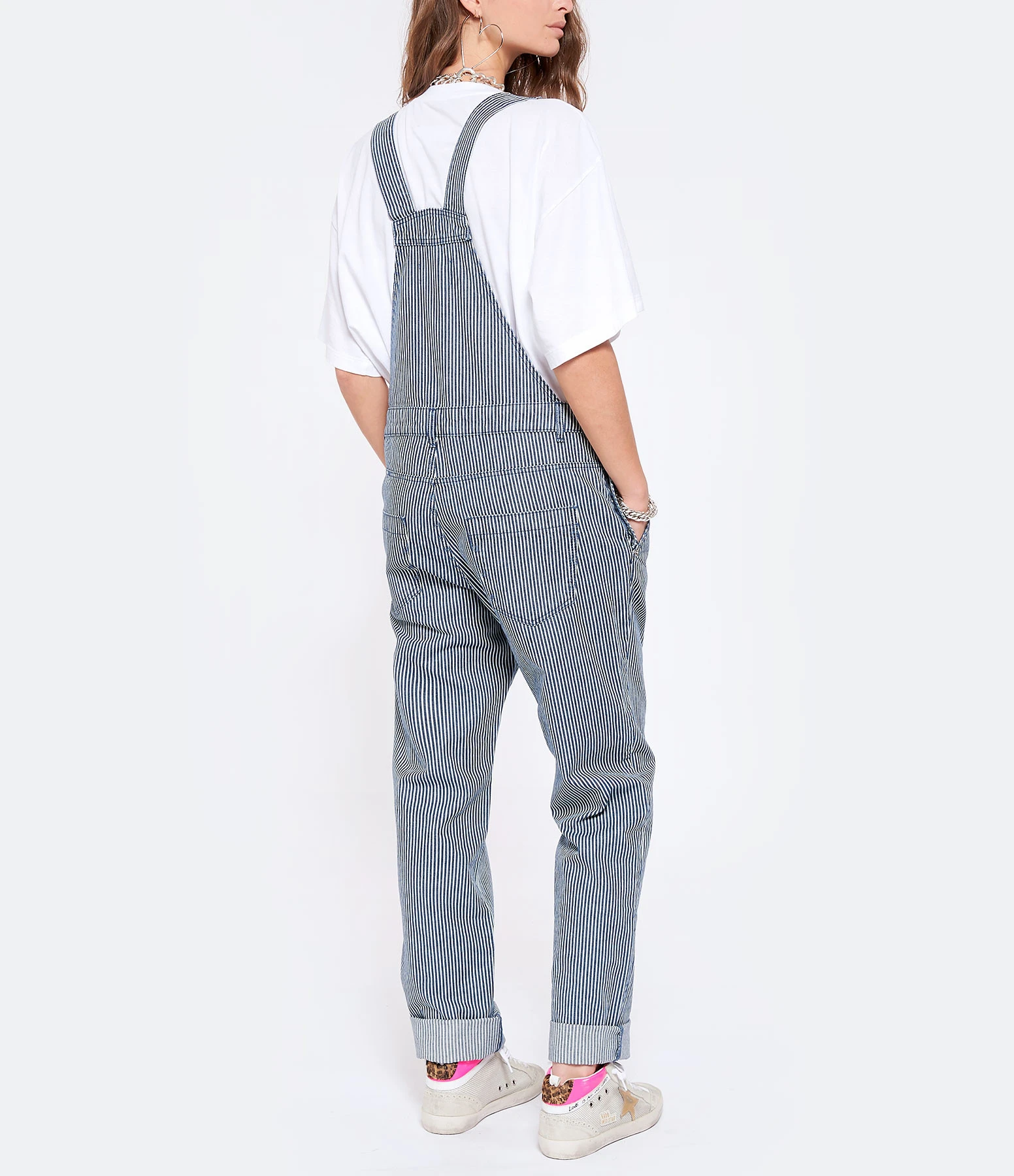 Conseil Stylistique :La salopette envahit nos dressings cette saison ! Optez pour la version rayée de la tendance du moment et associez cette salopette à un pull blanc et une paire de baskets. Look tendance assuré.
