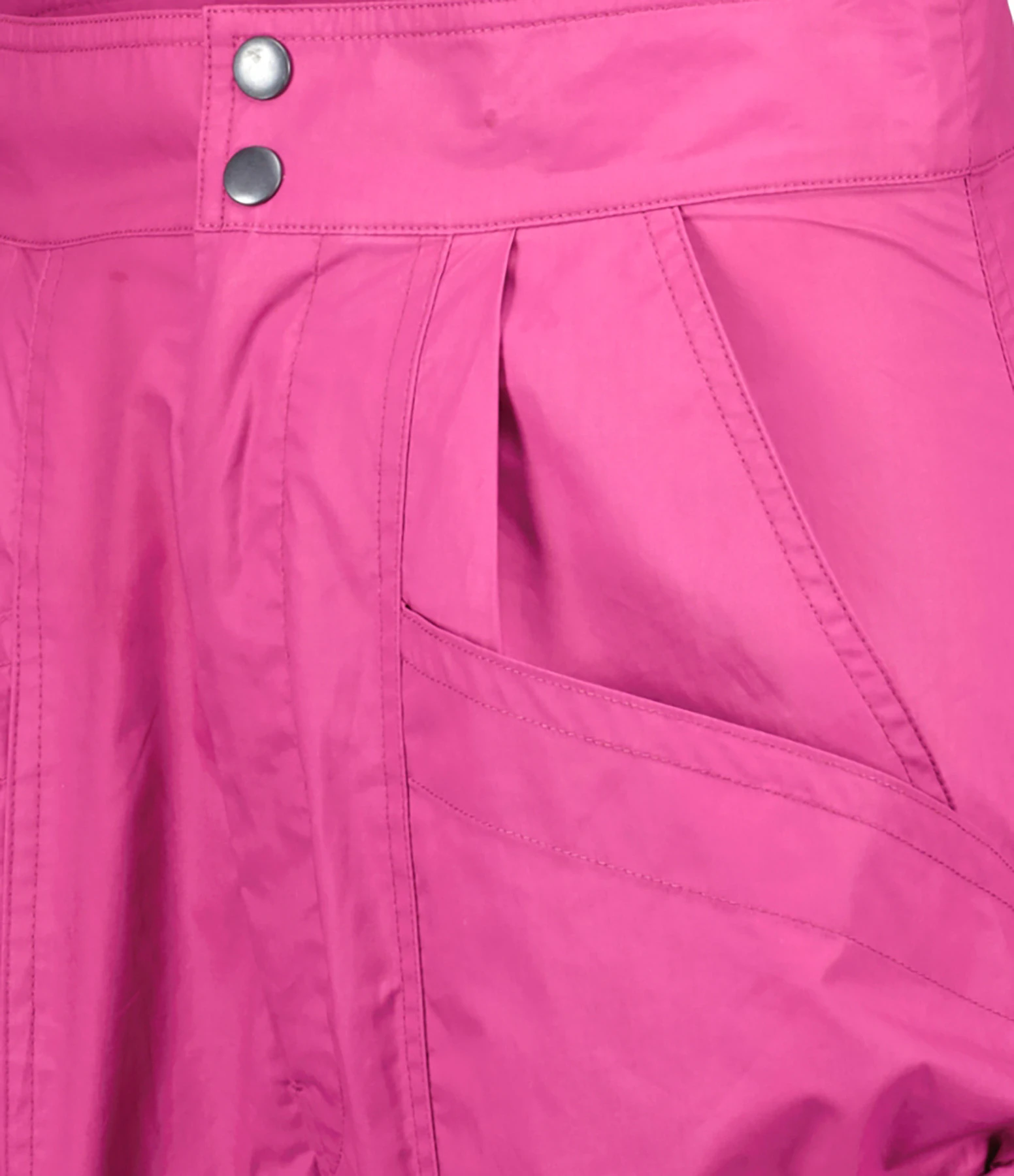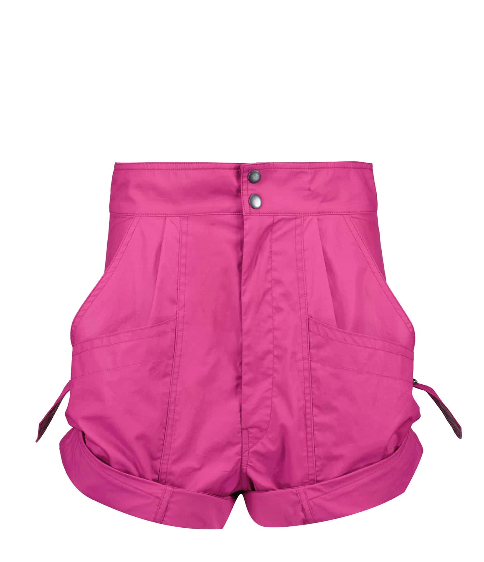 Short en coton violet. Taille haute. Fermeture zippée cachée et pressionnée. Quatre poches italiennes sur le devant. Deux poches plaquées pressionnées dans le dos. Coupe cintrée ample. Base droite.