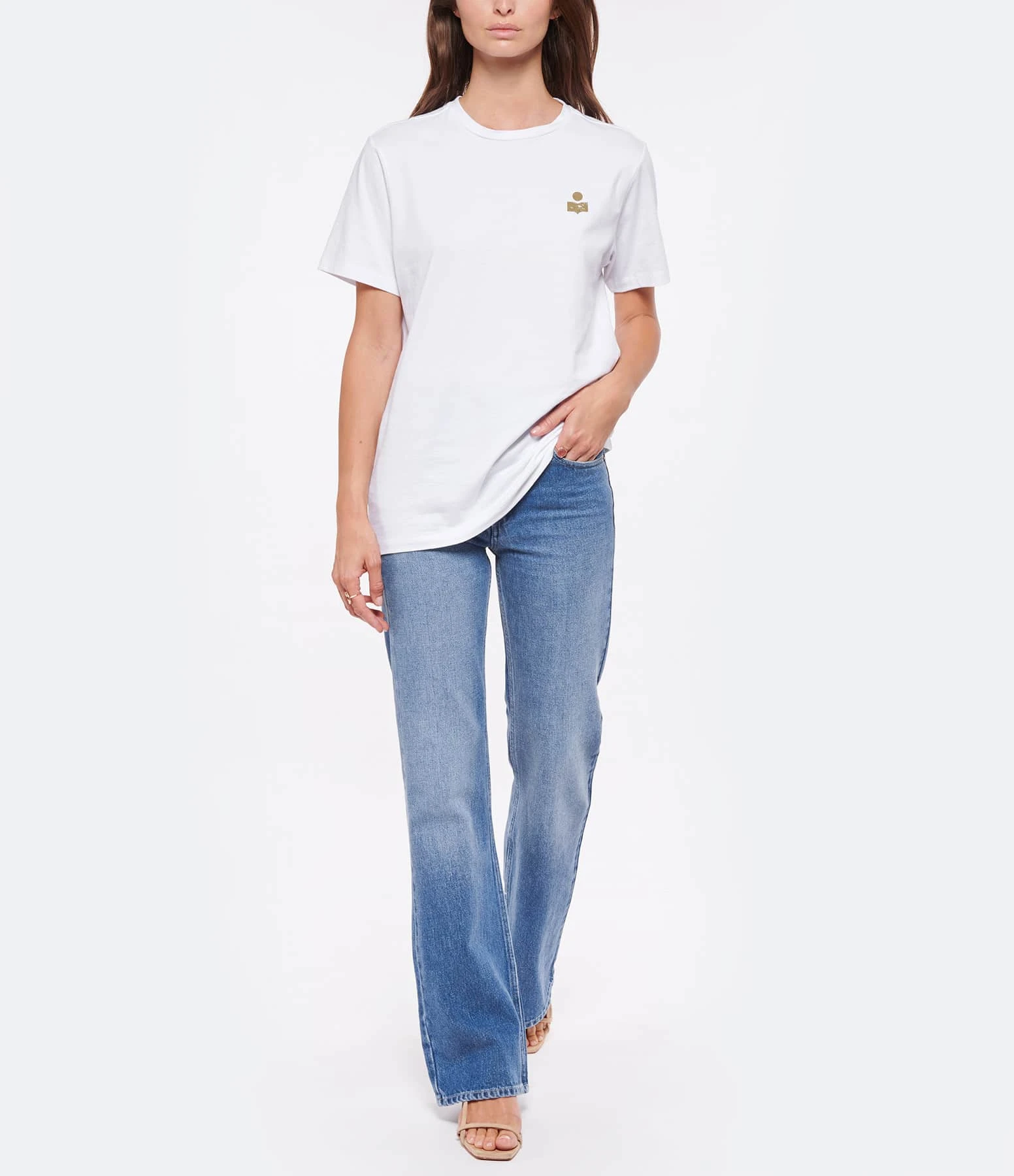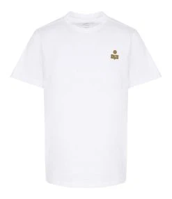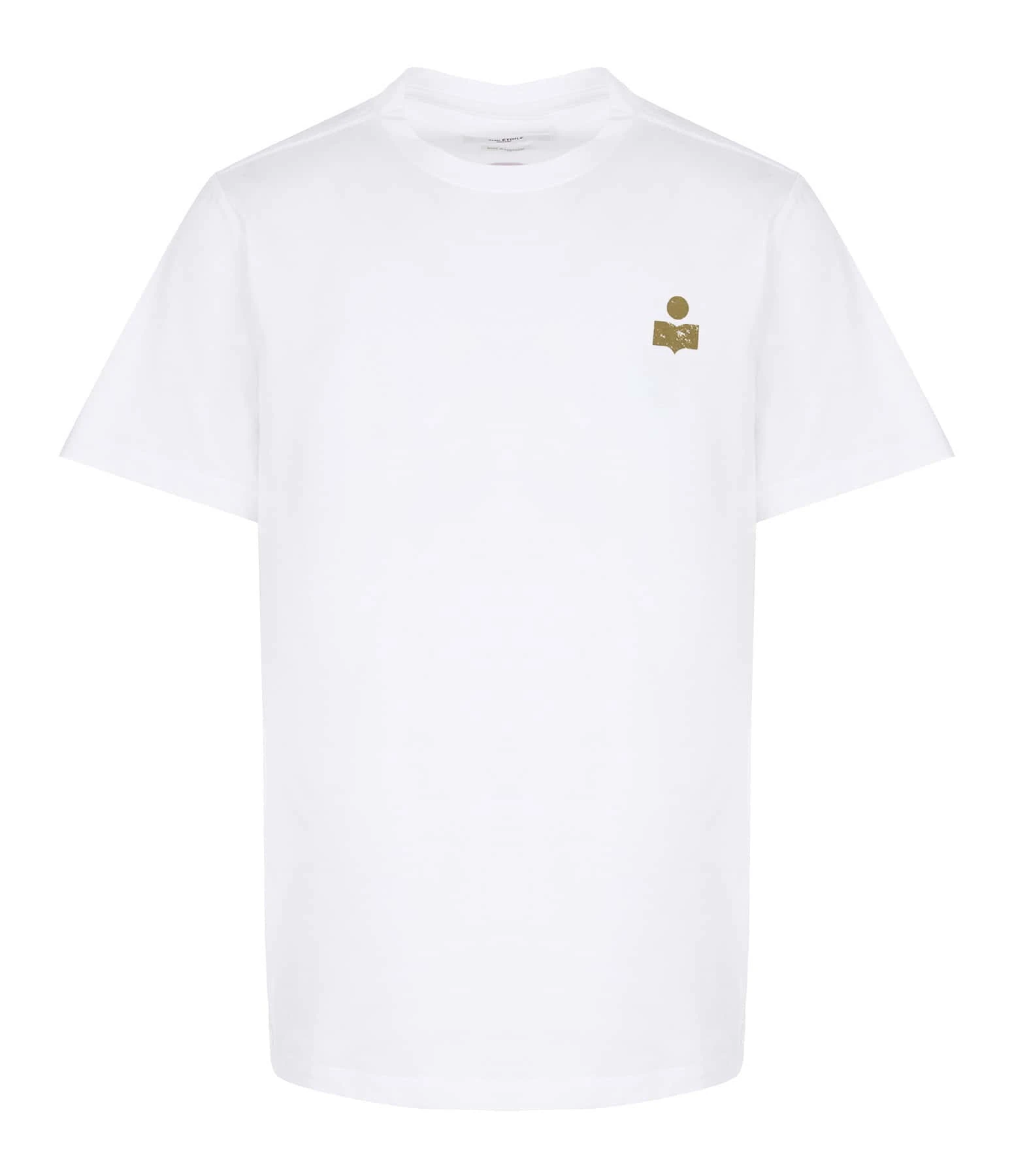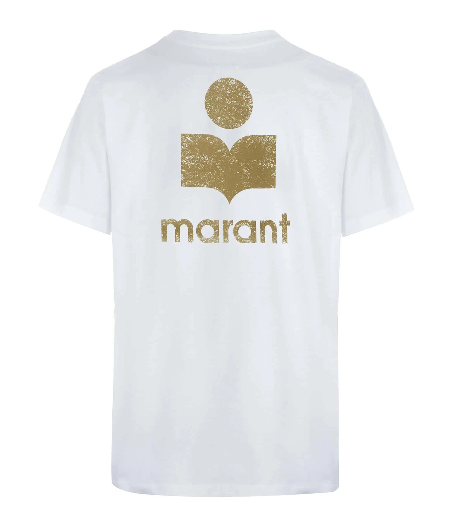 Tee-shirt en coton blanc. Petit logo kaki floqué sur la poitrine et grand logo kaki floqué dans le dos. Col rond. Manches courtes. Coupe droite. Base droite.