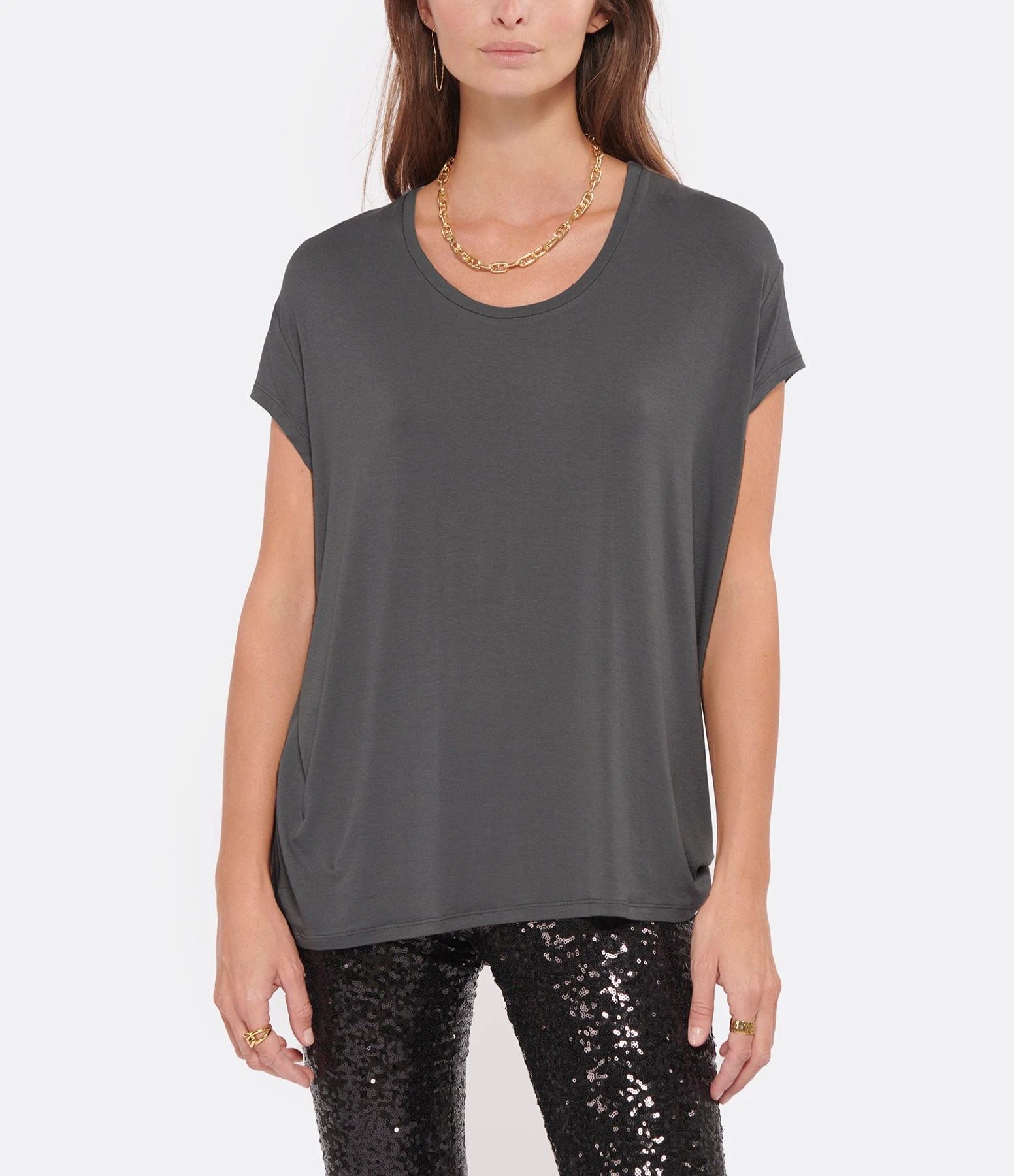 Tee-shirt manches courtes fluide. Coupe oversize. Col rond. Base droite.
