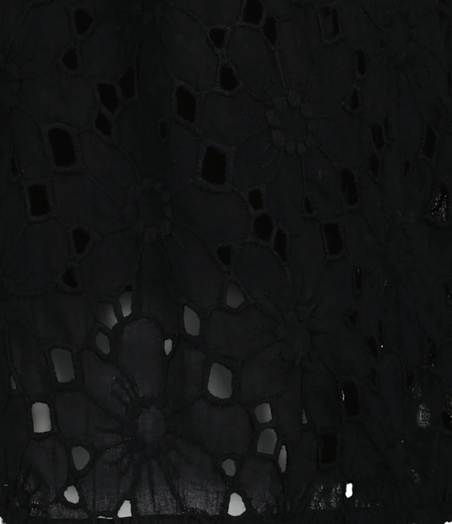 Short en broderie anglaise noir. Taille élastiquée. Fermeture zippée et par boutons sur le devant. Ceinture amovible en tissu assorti. Doublé. Coupe droite. Base droite.