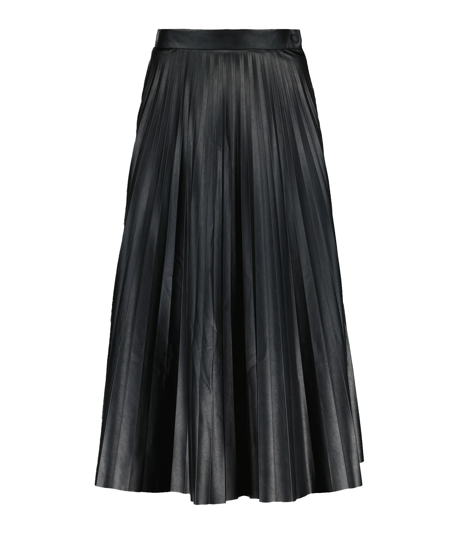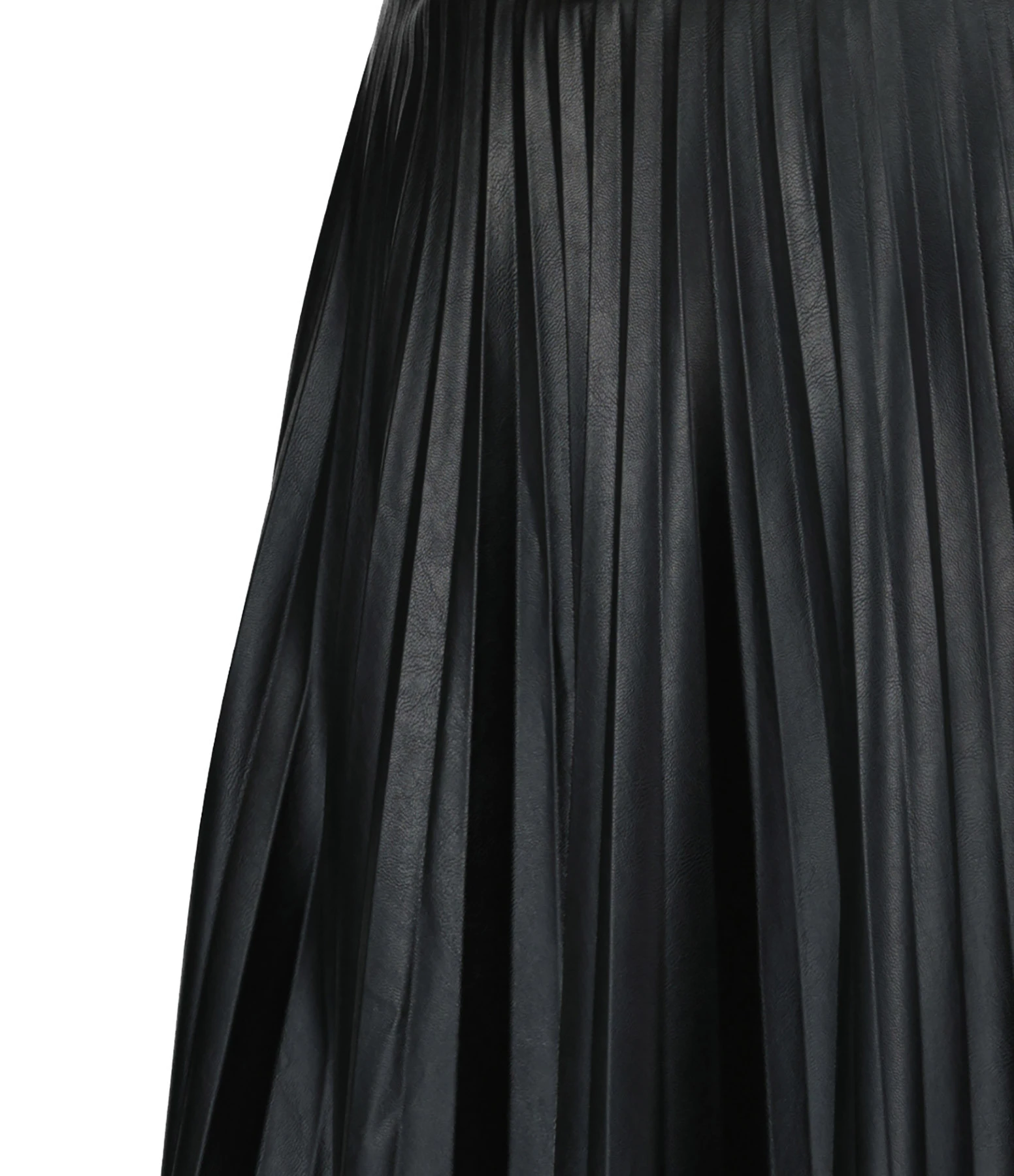 Jupe longue plissée noire. Ouverture par un zip sur le côté et un bouton. Base droite. Non doublée.