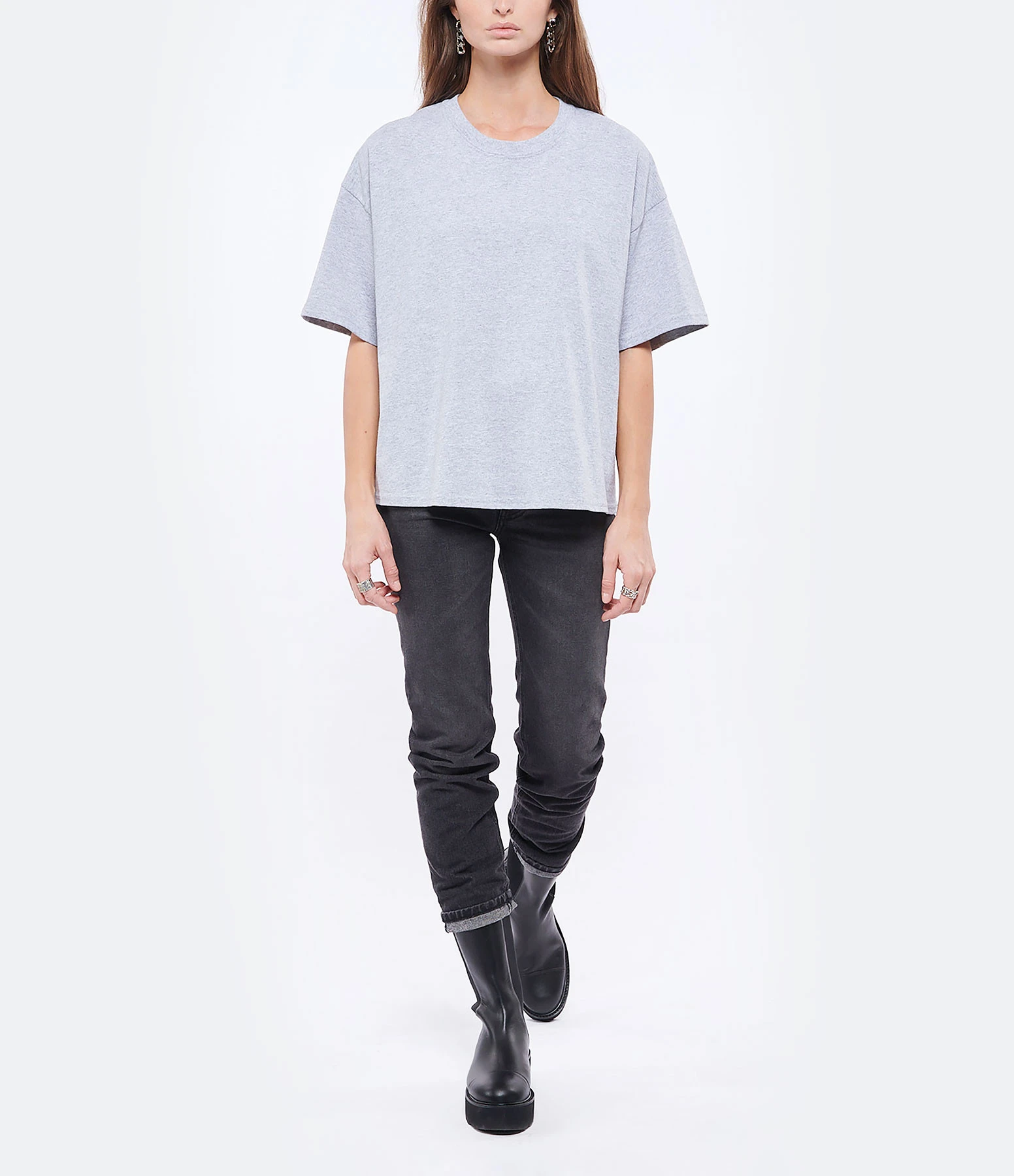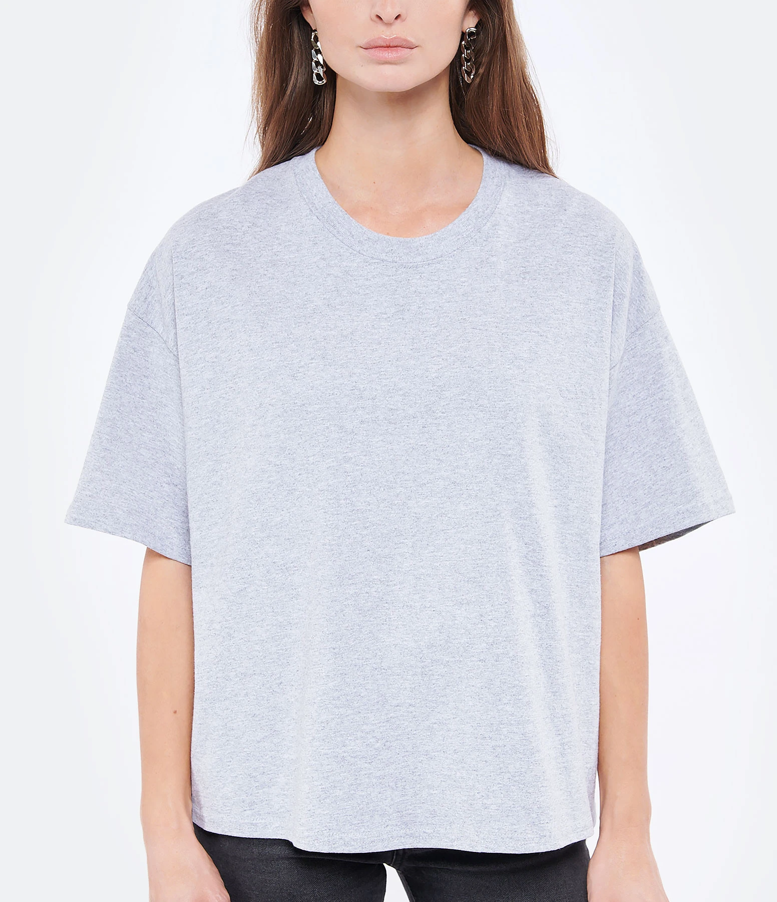 Tee-shirt en coton chiné. Col rond. Manches courtes. Coupe ample. Base droite.