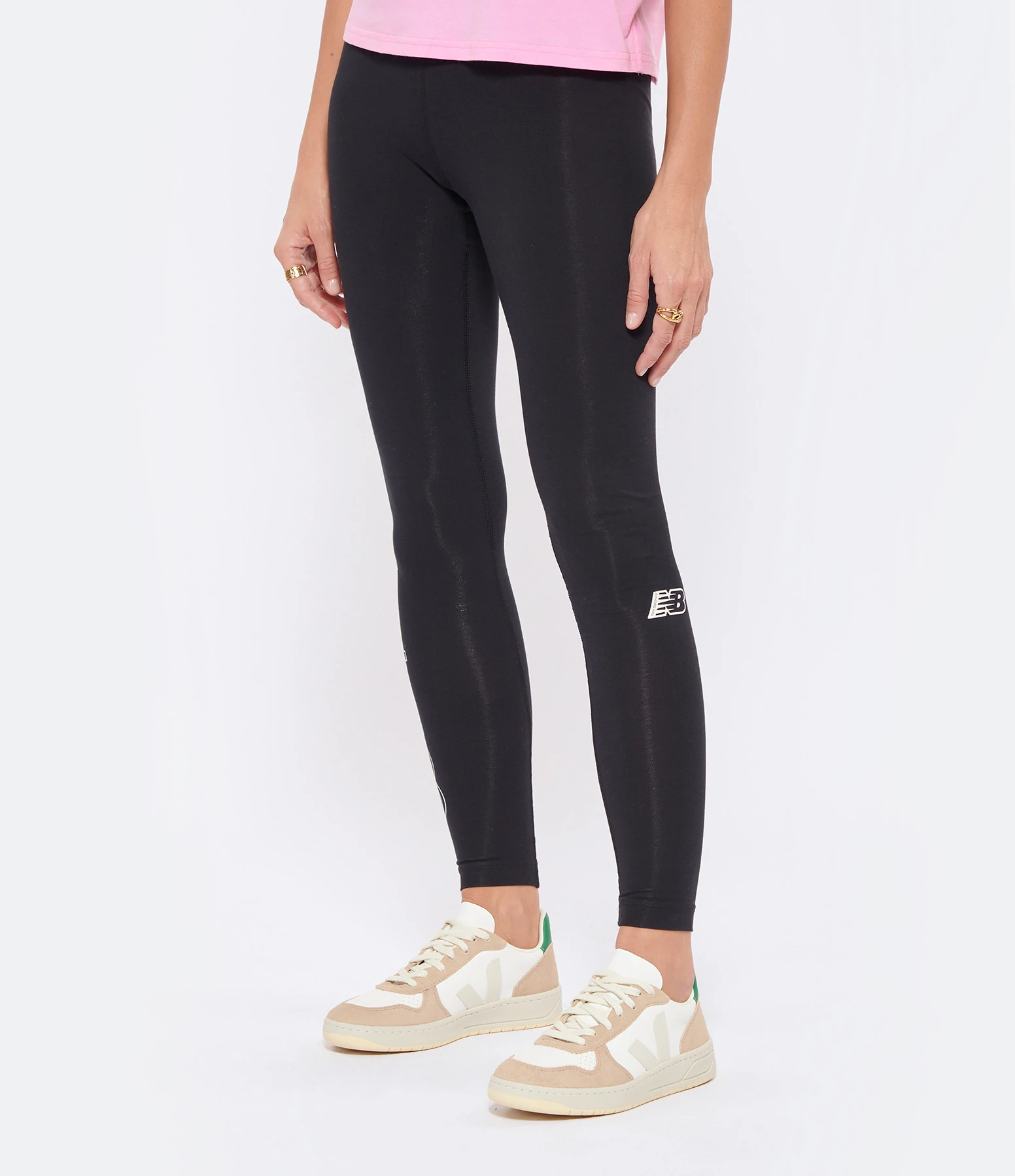 Legging en coton noir. Logo sur la jambe gauche et inscription « New balance » sur la jambe droite. Taille mi-haute. Coupe ajustée.