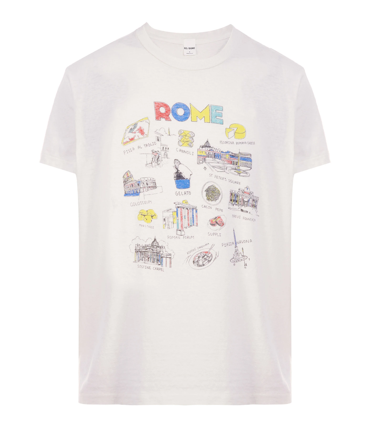 Tee-shirt en coton blanc imprimé illustrations. Col rond. Manches courtes. Coupe droite. Base droite.