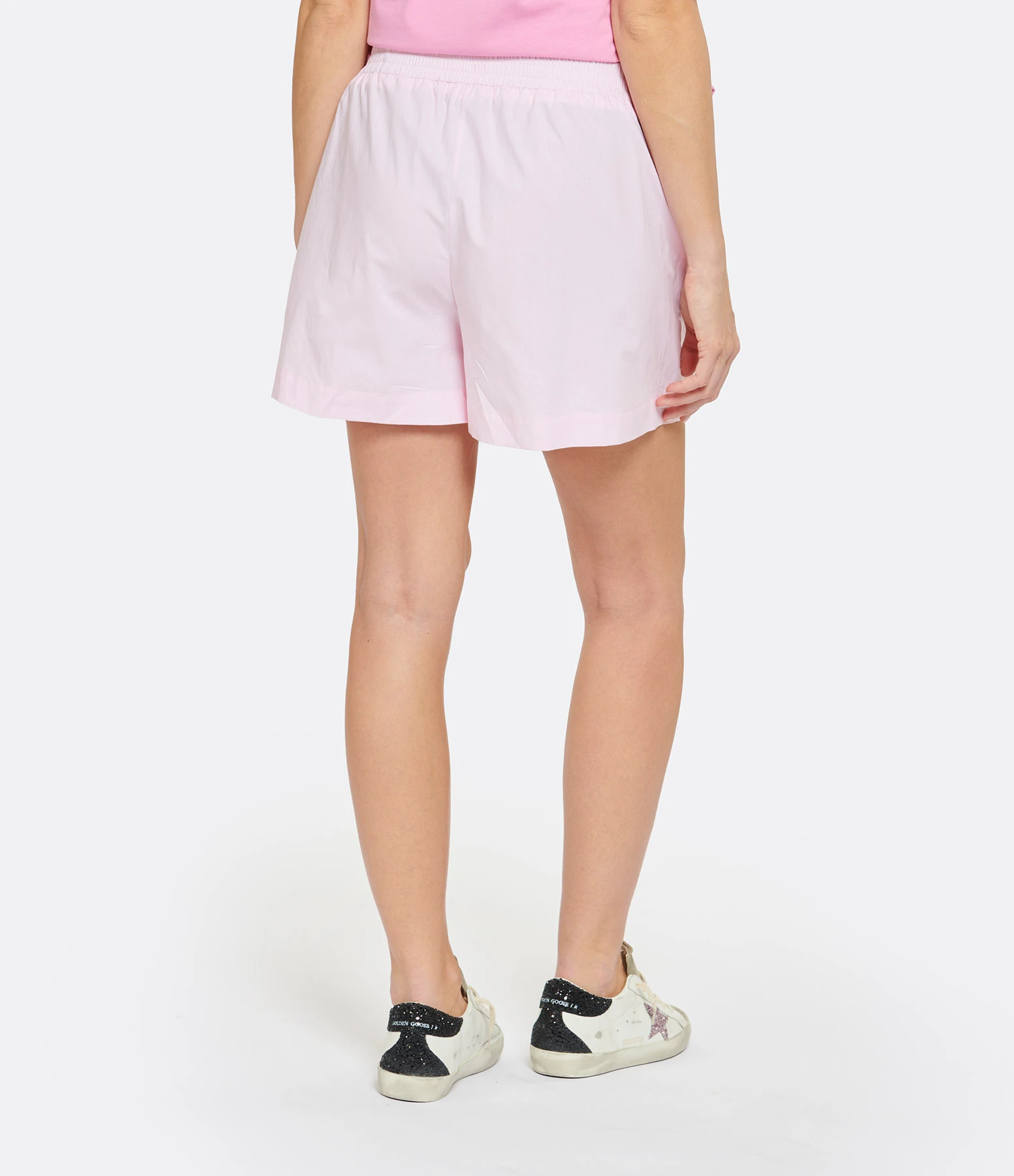 Short en coton rose. Taille élastiquée. Deux poches à l’avant.