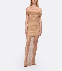 Robe courte grise à paillettes. Col rond. Resserrée à la taille. Manches longues. Epaulettes. Coupe ajustée. Fermeture zippée invisible dans le dos. Doublée. Base arrondie.