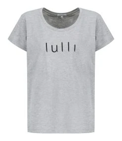 Tee-shirt en coton gris. Logo Lulli sérigraphié en noir sur le devant. Col rond. Manches courtes. Coupe droite. Base droite.